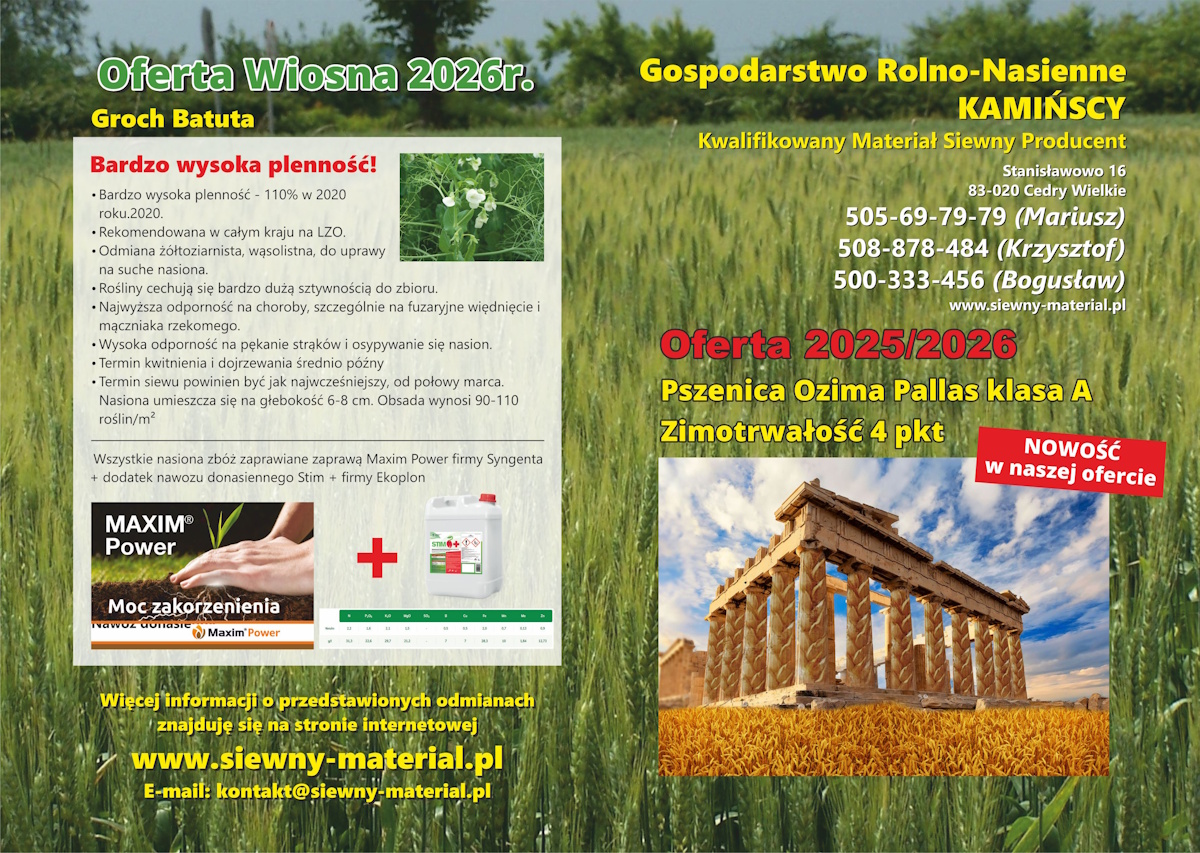 - Bardzo duży plon nasion i białka ogólnego.